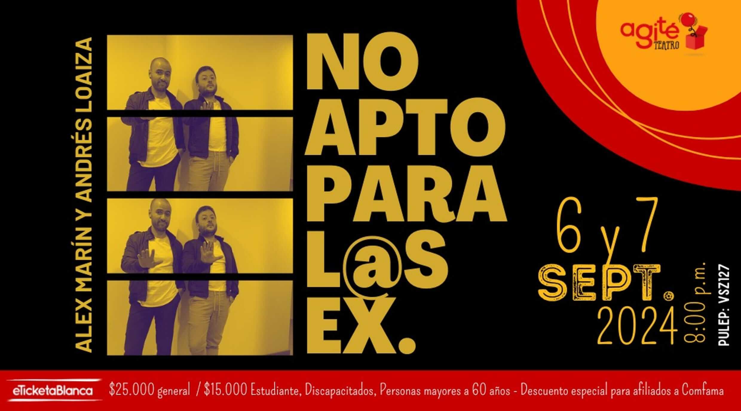 La vida está muy cara pa’ pagar psicoterapia, y muchas veces no sabemos cómo responder a ese “Hola Perdid@” que aparece de la nada cuando l@ desbloqueas, así que aprovechemos este espacio que aparece como una señal del universo y caigamos todos a rajar de esa persona que nos dañó la existencia, garantizaremos un espacio seguro. No apto para l@s ex es un desahogo, donde haremos catarsis a través de la risa y de los testimonios teñidos de rabia y frustración que guardamos acerca de las exparejas que nos han hecho sufrir. Descubriremos quién era el tóxico de la relación y si sí es posible seguir siendo amigx de ese fulano, porque, como bien sabemos, todas mienten y hombre no es gente ni familia.
